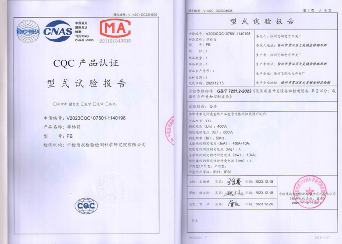 我公司生产的箱式变电站及高低压开关柜( KYN28-12、HXGN-12、MNS、GGD、XL、 变频柜、PZ30等),产品符合质量管理体系ISO9001认证标准,并获得了中国国家强制性产品认证、国家电器产品质量监督检测认证。企业生产、加工、检测设备齐全,有足够的加工实力和完善的检测手段。