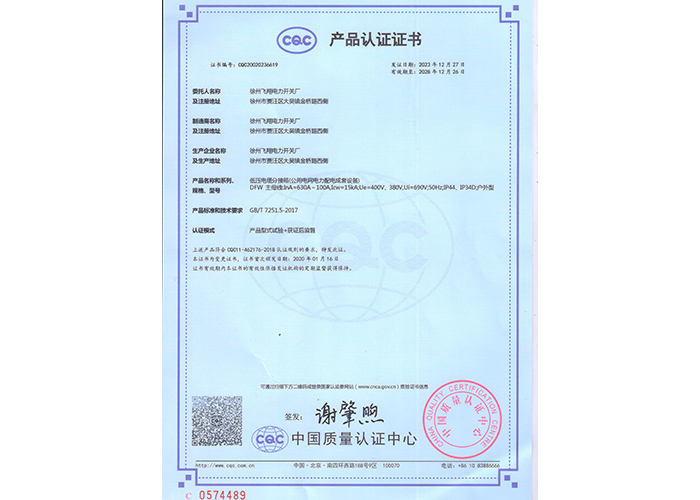 我公司生产的箱式变电站及高低压开关柜( KYN28-12、HXGN-12、MNS、GGD、XL、 变频柜、PZ30等),产品符合质量管理体系ISO9001认证标准,并获得了中国国家强制性产品认证、国家电器产品质量监督检测认证。企业生产、加工、检测设备齐全,有足够的加工实力和完善的检测手段。